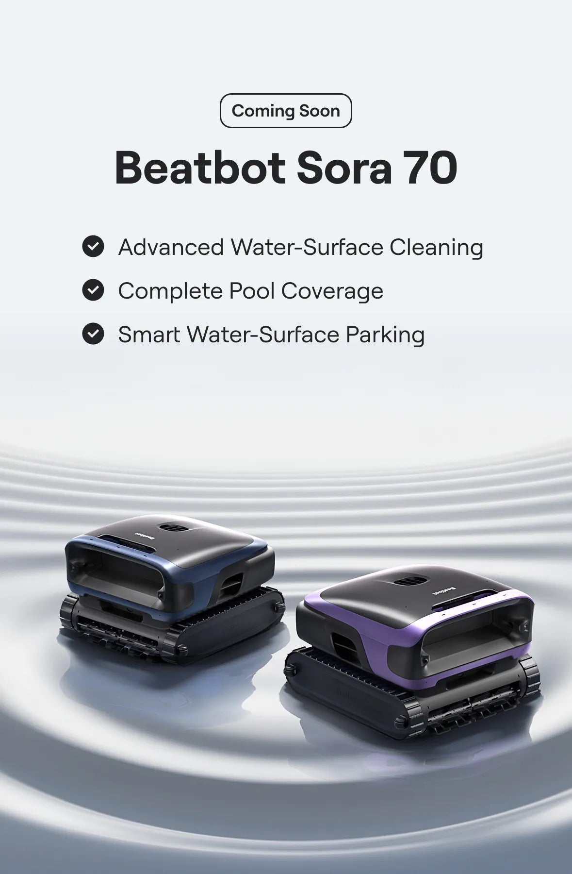 Beatbot Sora 70 delivers powerful, reliable cleaning performance in a more accessible form — a new expression of Beatbot's philosophy for everyday pool care.